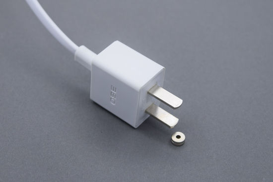 8字線的AC插頭同樣采用了不可吸附的銅材質(zhì),用刀也刮了。