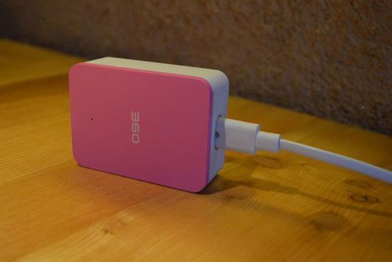 拆開后可見360超級(jí)充電器桌面版全家福,分別包含了充電器主體,這里拿到的是玫瑰紅色;一條8字AC延長(zhǎng)線,線上還設(shè)計(jì)了束線帶;一本使用說明,里面有產(chǎn)品詳細(xì)介紹和質(zhì)保條例。