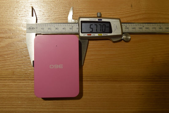 充電器的寬度實(shí)測(cè)尺寸約57.70mm,跟標(biāo)準(zhǔn)的55mm寬度名片相當(dāng);厚度27.19mm,也與1元硬幣直徑的25mm相近。